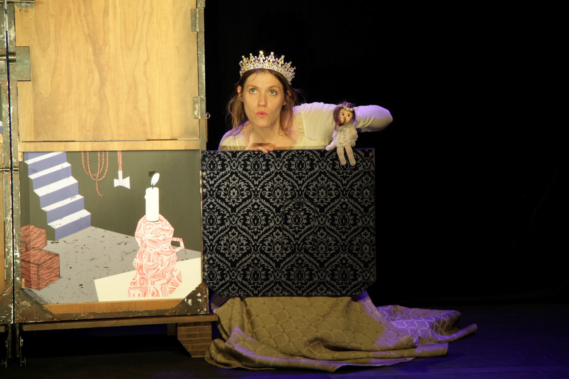 Une marionnettiste, un comédien et un musicien s’amusent à dépoussiérer le conte des frères Grimm en se servant de tout ce qu’ils trouvent dans cette armoire de Mère-Grand, ce morceau de grenier oublié depuis si longtemps. Tous ces objets se mettent à vivre et à chanter aux rythmes enjoués d’un tambour, d’une vielle à roue et d’un orgue à soufflet.