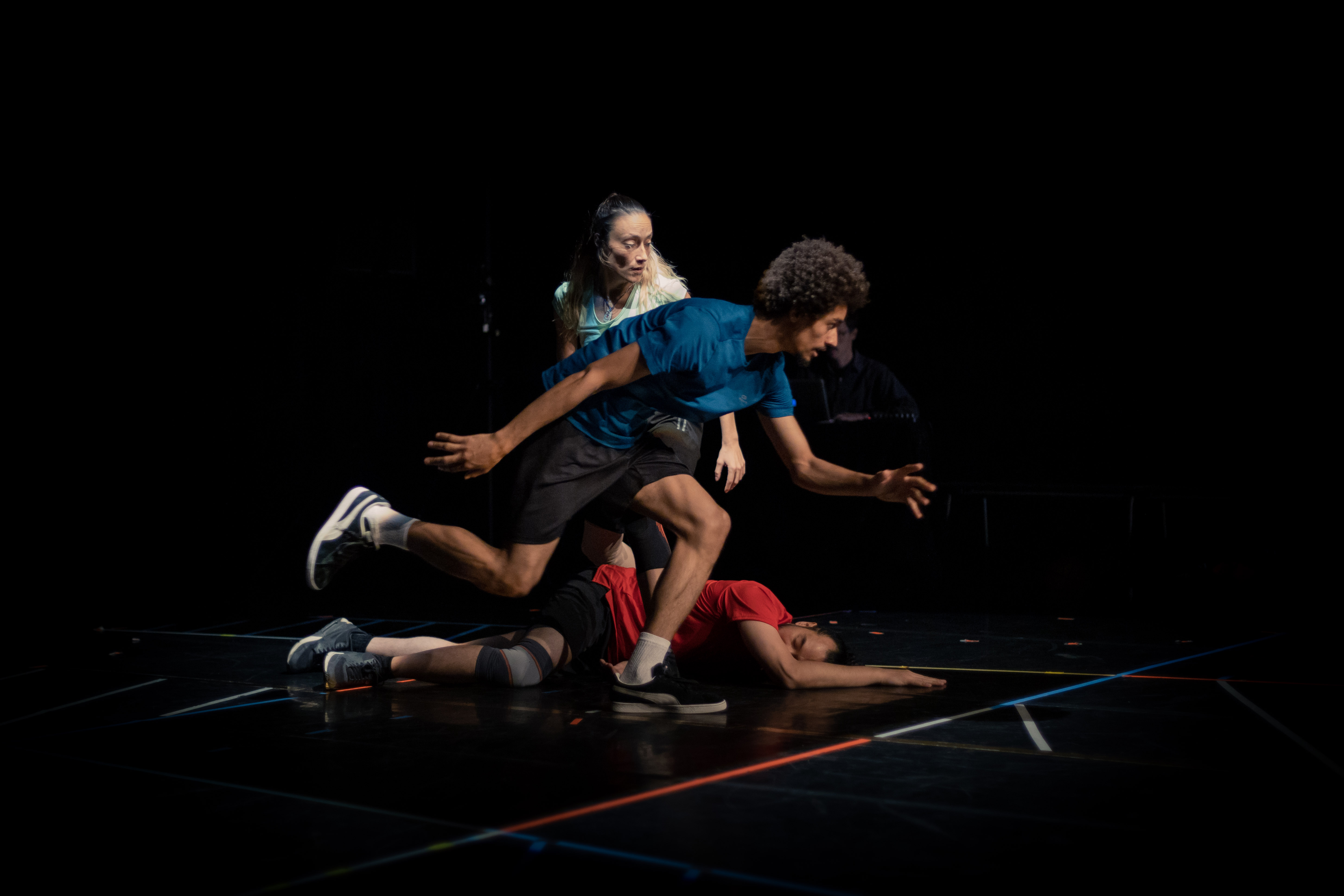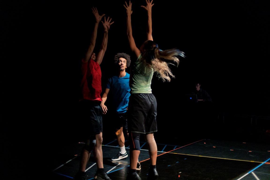 Un DJ sur le plateau et trois interprètes, autant danseurs que grands sportifs, autour d’un ballon rond. Mêlant les gestes du basket, la danse contemporaine et le hip-hop, un match-ballet va se jouer, dans les rebonds des relations entre les joueurs-danseurs. Bienveillance, camaraderie, esquive, fuite ou résistance, la pièce qui démarre comme un match de basket va devenir un ballet aérien.